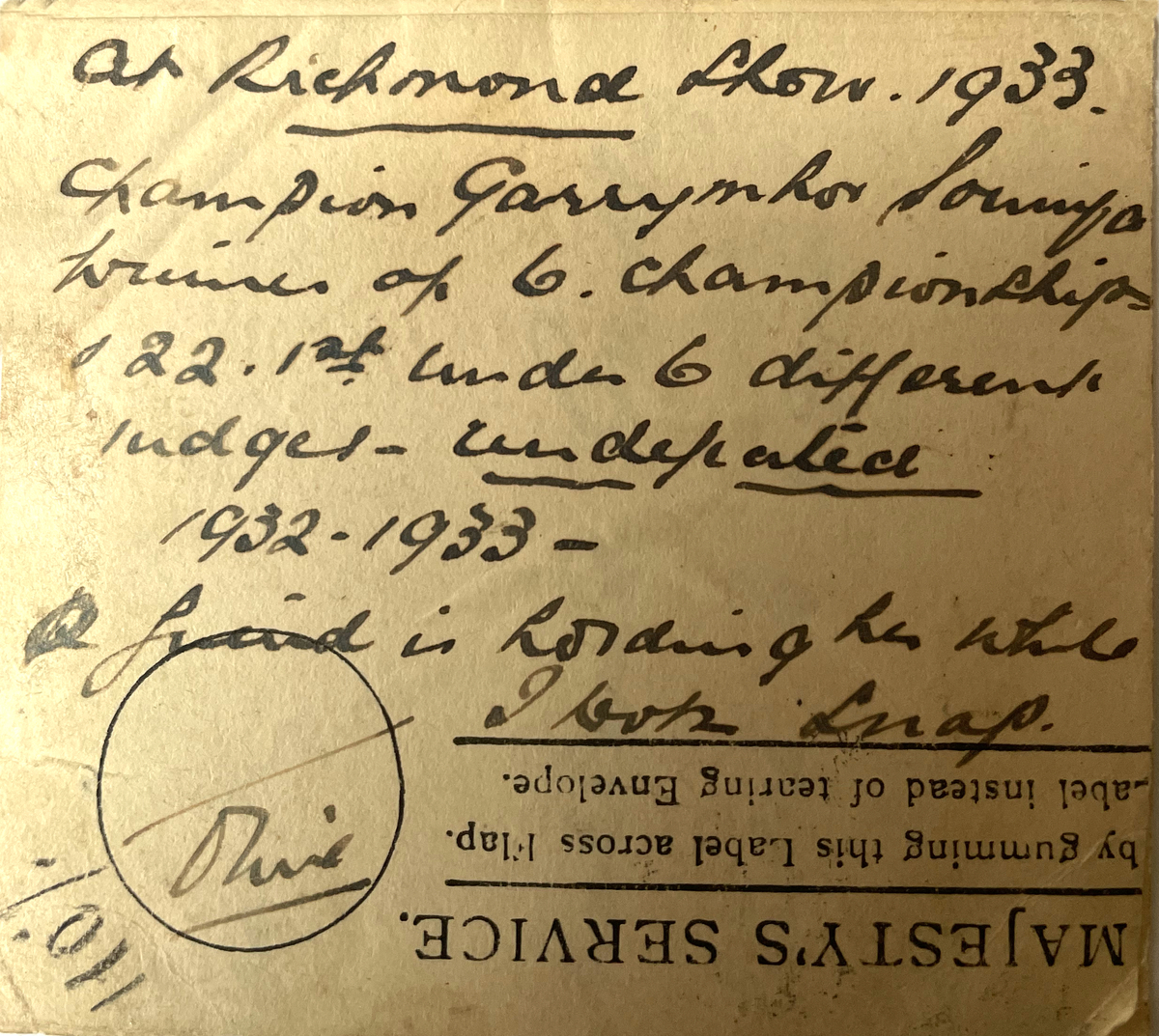 - Mrs T S (Olive) Couper, United Kingdom